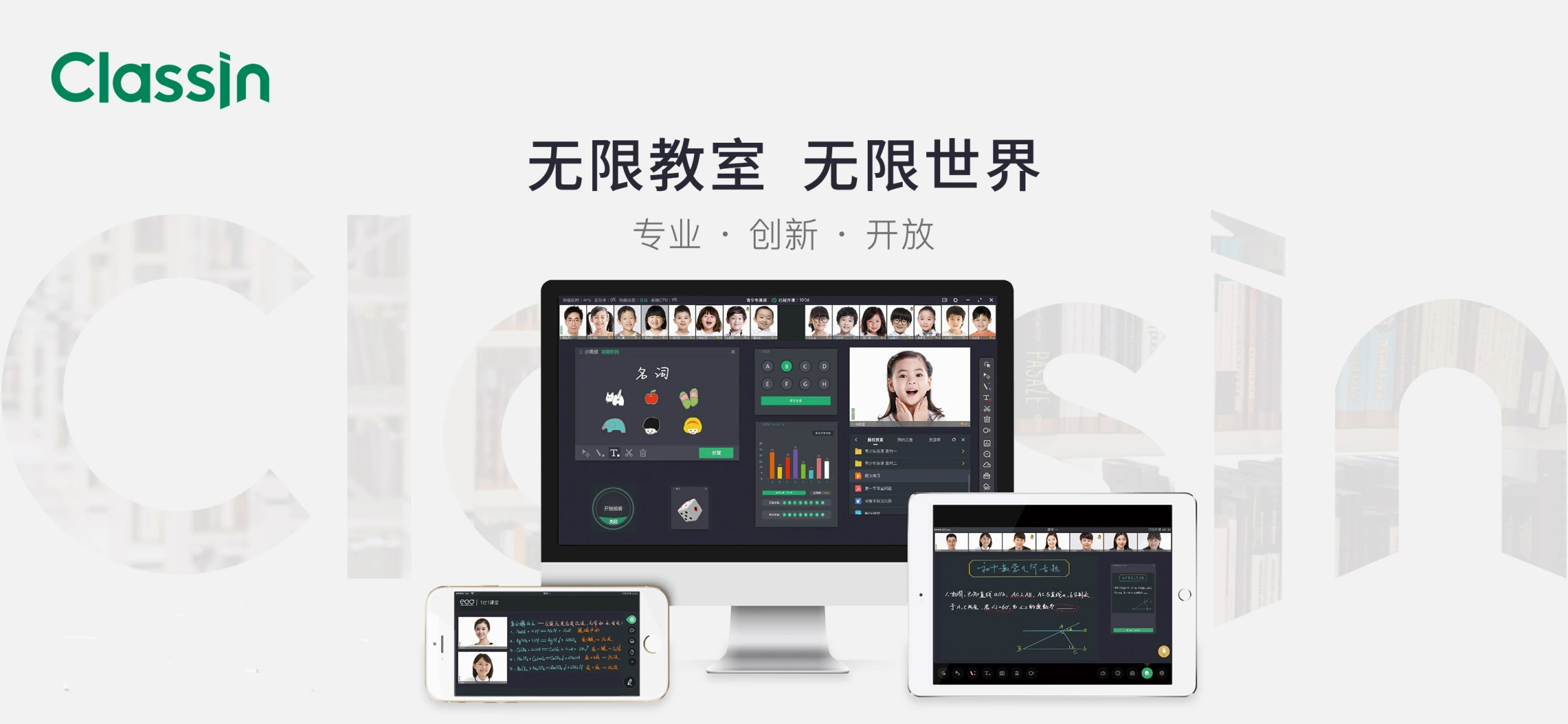 ClassIn是由ClassIn官方出品的在线互动教室软件,一对多直播互动教学模式是它最大的王牌。软件提供视频授课、学习答疑、试题练习等多样化的学习服务,最大程度地实现互动教学理念,还原线下面对面互动式教学的在线教室!ClassIn电脑版涵盖了海量中小学知识点内容,提供视频授课、学习答疑、试题练习等学习服务。是一款完美诠释教育本质,还原线下面对面互动式教学的在线教室,ClassIn为在线教学提供完美的解决方案!