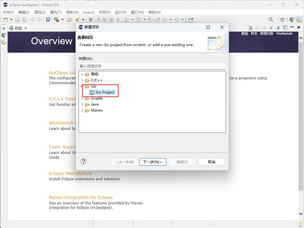 5、安装完成重启Eclipse,可以看到goeclipse出现了,用户可以使用了。