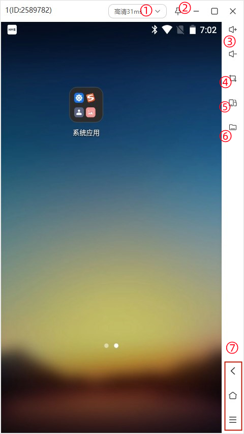 ⑦从上至下分别为设备里面的返回、桌面、后台运行界面三种