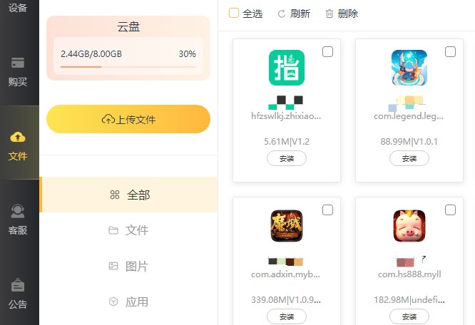 3、文件:此界面为上传功能,上传的内容可以安装或者推送到设备里面。