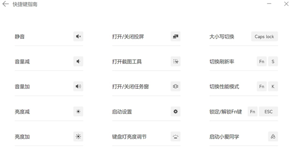 5、快捷键指南,此功能用于查看和学习笔记本上的快捷键;