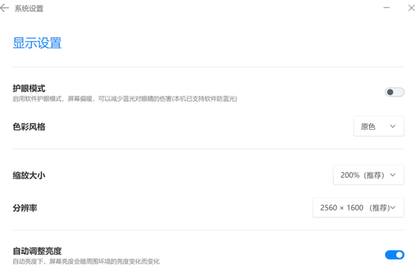 2、点击此界面系统设置,会打开显示设置,在这个界面,用户可以在此界面开启护眼模式,调整一些显示的功能,刷新率等;