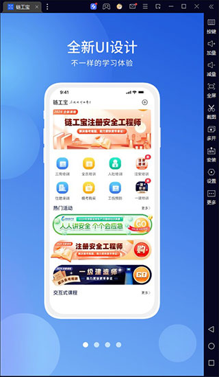 链工宝电脑版是需要借助模拟器在电脑上运行的一款企业安全知识培训软件。软件内汇集了丰富多彩的培训课程,旨在帮助用户提升职业技能,丰富知识储备。用户可以通过海量的课程视频进行学习,这些视频都是由众多名师倾心打造,让用户可以学习高质量的安全培训知识。