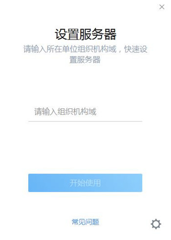 3、安装完成后,打开进入设置服务器页面,然后输入组织机构域,点击下方“开始使用”