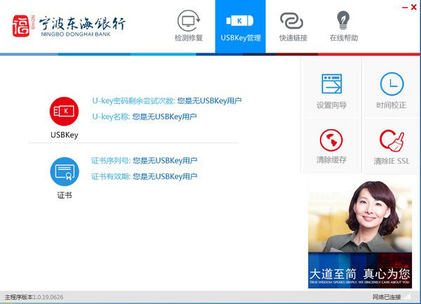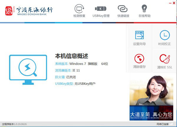 1、宁波东海银行网上银行于2016年10月23日起全新改版,登录地址不变;2、客户首次登录新版网银需要下载运行新版网银助手。USB Key用户运行网银助手时请务必将USB Key插到电脑上,点击“检测修复”;