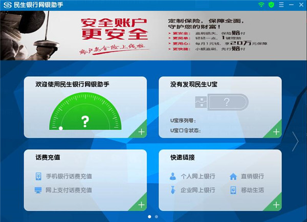 民生银行网银助手官方版是由民生银行官方研发推出的一款网银系统安全辅助软件工具,民生银行网银助手主要功能是为您提供了网银检测、证书管理、安全防护等等功能,让您在使用网银系统的过程中更加的安全便捷,让您的电脑始终保持最佳的安全状态。有需要的小伙伴们,赶快来3322软件站下载使用吧!