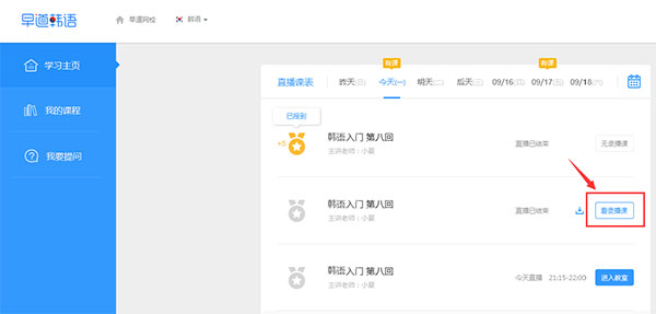1、全程真人直播,学日语才真有效! 上课轻松了,高效了。全程实时互动教学,即学即用,效率提升50%,课后不掉课,高清录播视频终身学。 2、CPSS云智能学习系统,学习效果看得见! 目标化一闯关学习,以学习目标为导向,引导学员完成阶段小目标获得成就感,激发学习动力。个性化一自主选课,按阶段自由选课,提高学员学习积极性和主动性 3、1对1专属班主任,从此爱上学习! 行业强大的课后服务团队全程贴身服务,20多种主题沙龙课,天天爽起来。早道网校官方版如何查看回放