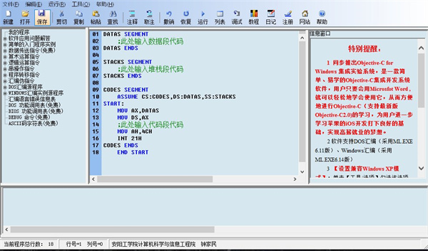 15、200多种中英文错误信息同步显示功能扫除了英文差的用户学习汇编语言的恐惧心理。