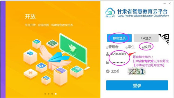 2、绑定账号和密码(账号和密码同甘肃省基础教育资源公共服务平台)