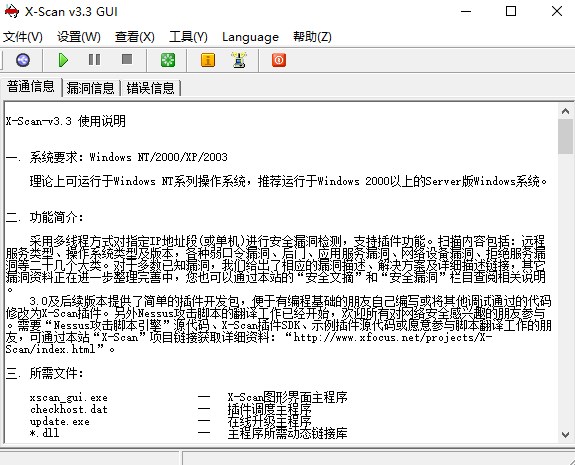 x-scan扫描器官方版是一款国内著名的综合扫描器,该扫描枪主要由国内著名的民间黑客组织“安全焦点”完成,从2000年的内部测试版X-Scan V0.2到目前的最新版本X-Scan 3.3都凝聚了国内众多黑客的努力。该软件免费绿色免安装,支持中英文两种语言,采用多线程方式对指定IP地址段(或单机)进行安全漏洞检测,支持插件功能,提供了图形界面和命令行两种操作方式。扫描内容包括:远程服务类型、操作系统类型及版本,各种弱口令漏洞、后门、应用服务漏洞、网络设备漏洞、拒绝服务漏洞等二十几个大类。X-Scan把扫描报告和安全焦点网站相连接,对扫描到的每个漏洞进行“风险等级”评估,并提供漏洞描述、漏洞溢出程序,方便网管测试、修补漏洞。扫描结果保存在/log/目录中,index_*.htm为扫描结果索引文件。