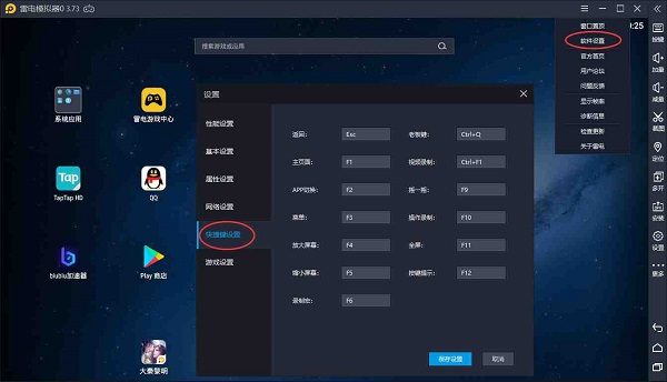 为什么需要设置安卓模拟器快捷键?因为你在安卓模拟器玩吃鸡游戏的时候按键操作突然弹出来一个快捷键,可能下一秒就挂了,虽然像雷电模拟器这种有默认按键设置好了,一般是不会冲突的,但是难免有人不顺手需要使用自定义按键功能改个按键。类似的理由很多,今天这一篇教程就完整的说一下雷电模拟器快捷键大全。 首先要知道模拟器本身自带的快捷键有哪些才行,打开模拟器右上角的软件设置,进入快捷键设置就可以查看到模拟器基本的快捷键,点击随便一个按键都可以更改。