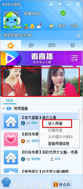 看到喜欢的妹子,点照片就进入房间观看直播啦!