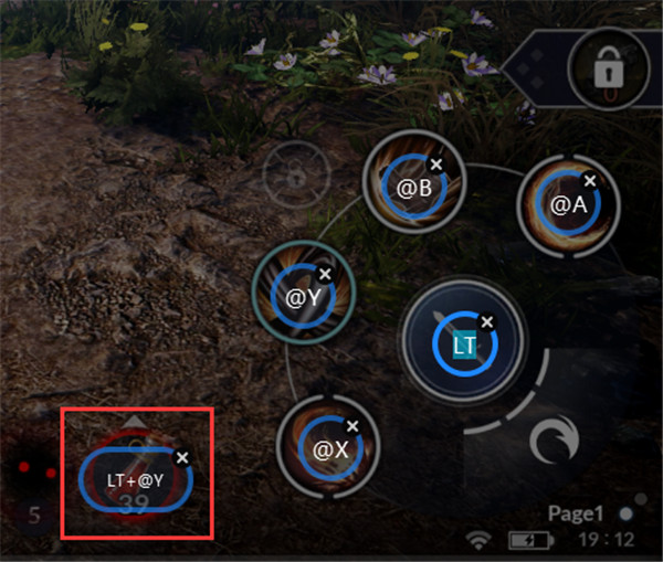 10、组合键范例:在游戏画面需要设定手把按键操作地方;使用滑鼠点选位置,然后在手把上同时按下两个需要被组合起来的键位,例如:在药水位置上设定LT+Y键,手把上同时按下LT+Y键就会执行喝药水动作。