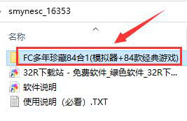 因为很多小伙伴都是第一次使用smynesc模拟器这款软件,所以都不知道怎么用,小编这就来为大家讲解一下。 1、首先我们在本站下载模拟器文件,解压完成后进入【FC多年珍藏84合1】文件夹中。