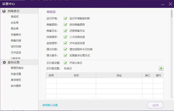 5、设置中心可以对软件进行病毒查杀设置和软件基本设置。