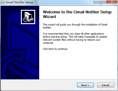 1、从本站下载Gmailzip文件,然后点击其中的Gmail_Notifier.exe应用程序,进入安装向导界面,接着点击下一步。
