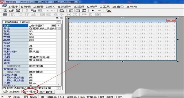 1、打开e语言5.9,创建一个"windows窗口程序",再左侧中间的选项卡,看图。