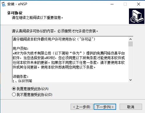 2、进入eNSP安装向导,正式开始安装
