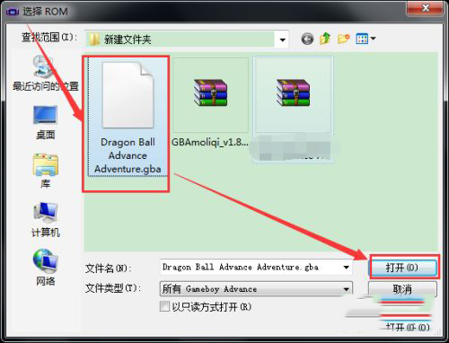 3、点击(打开)选项后,如图选择一个已经下载的游戏ROM(务必解压文件打开)后即可开始游戏。