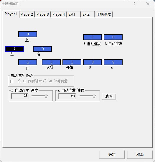 WASD 上下左右 J B自动连发 H A自动连发 3 选择 1 开始 U B(一般指攻击) Y A(一般指跳跃) PS:如果用户不喜欢这些游戏设定,可以安装如下步骤进行修改 1、点击“选择”——“控制器”