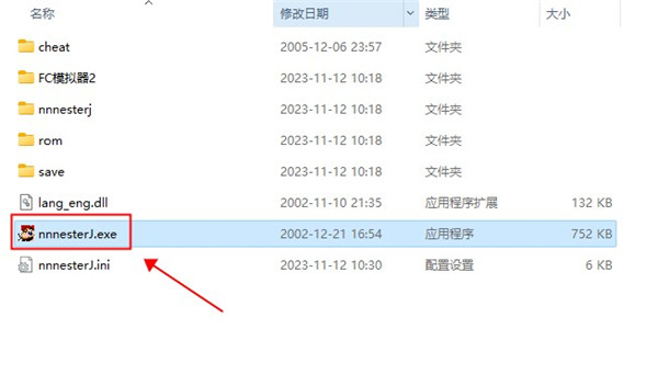 1、解压任天堂红白fc模拟器安装目录,然后点击“nnnesterJ.exe”文件,打开程序