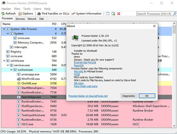 Process Hacker是一款功能强大、实用性强的免费开源的检测系统进程管理工具。Process Hacker支持内存搜索已经提供一个强大的 run-as 工具,Process Hacker可以用来显示Windows系统下的服务、进程、线程、模块、句柄以及内存区域的数据。软件还可以查看和管理系统进程、调试和监控系统,查看和编辑内存、管理系统服务,监控网络的占用状况,还可以在系统托盘中可显示CPU状态、I/O状态和内存使用状态。可见Process Hacker 的功能是非常强大的,不过,Process Hacker在运行时需要加载驱动,提供更强大的进程管理功能,有需要的朋友可以下载看看。