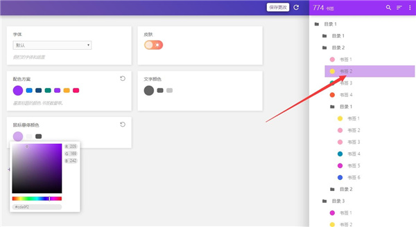 1、对侧边栏的字体、配色方案、文字颜色,甚至鼠标悬停颜色都能进行自定义更改