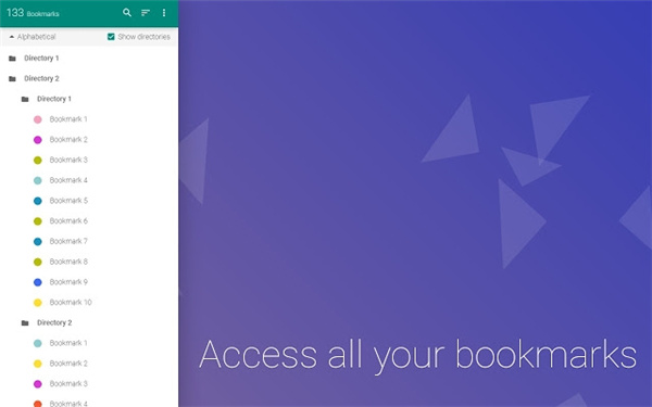 书签侧边栏插件是一款为chrome用户提供的书签侧边栏插件,chrome的书签栏一般都是在地址栏上方,其实保存的书签多了浏览起来并不是很方便,这款书签侧边栏插件颜值很高,可以让你预览你保存的书签,你仅需要单击屏幕左侧即可访问书签。插件可以让你快速的找到你保存的网站地址,也可以对你喜欢的网站地址进行分类,快速筛选,但是面对未来屏占比越来越大的需求,在浏览器上如果显示书签的话就回浪费一小部分空间,可能这部分空间对某些人来说不重要,但是对于一些对屏占比要求很高而且追求浏览器简洁的人来说,这个书签可能就无法忍受了;插件还支持拖放操作来编辑,删除或重新排列书签,以及查看有关它们的一些信息,仅需要单击屏幕左侧即可访问书签,在浏览器视图区左侧添加固定式的, 管理所有书签的侧边栏,有兴趣的小伙伴快来下载体验吧!