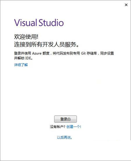 1、打开Visual Studio 2019出现欢迎使用,这里我们直接点击以后再说。