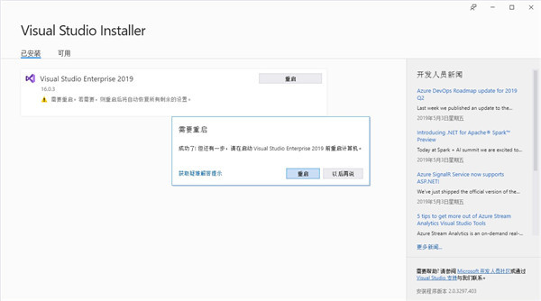 10、等待安装完毕之后,会出现下图所示,点击“重启”或者直接关闭即可
