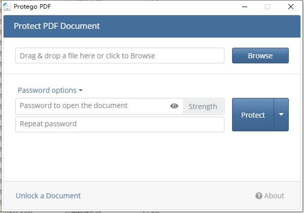可以将PDF文件拖放到主窗口中以开始使用。在继续进行任何操作之前,您应该知道不支持批处理,这意味着Protego PDF无法同时向多个文件添加密码。