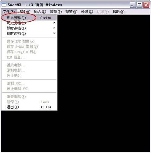 3、 双击snes9x.exe、打开模拟器、然后点击文件――载入游戏: