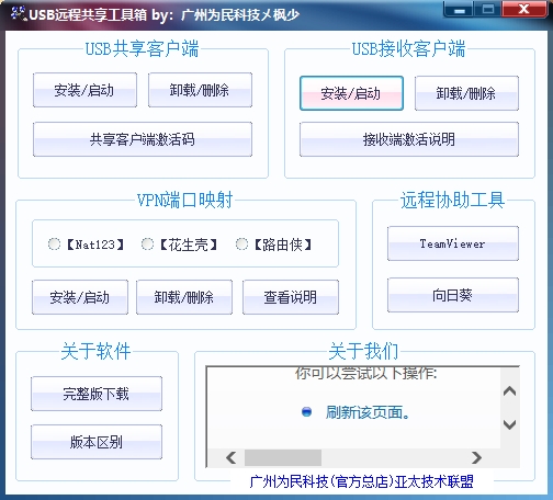 USB远程共享工具箱中文版是一款便携式功能强大的USB远程控制共享资源软件,它共提供了完整版和精简版两种版本给用户选择,你可以依据自身的要求来挑选安装!通过USB远程共享工具箱不仅可以协助客户处理USB共享和USB接收的难题,而且它还适用于远程桌面,你可以远程桌面连接共享硬件配置机器设备给朋友!有需要的用户欢迎下载使用。