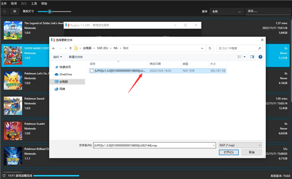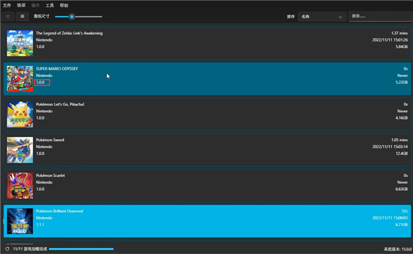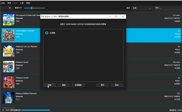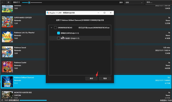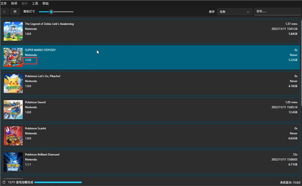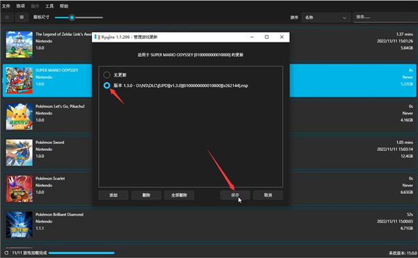 7、然后返回ryujinx模拟器,选择马里奥1.3的版本,点击保存;
