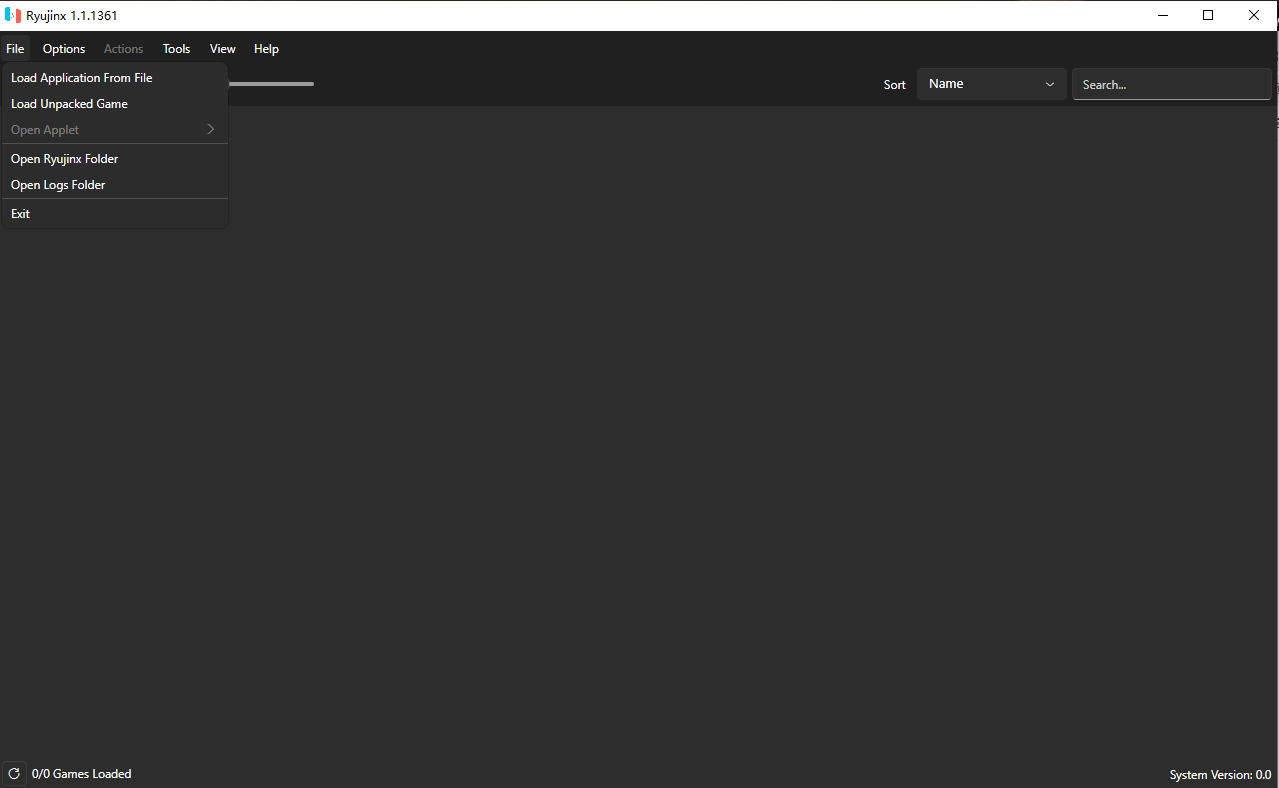 3、在模拟器最上方依次点击File→Open Ryujinx Folder 打开Ryujinx目录;