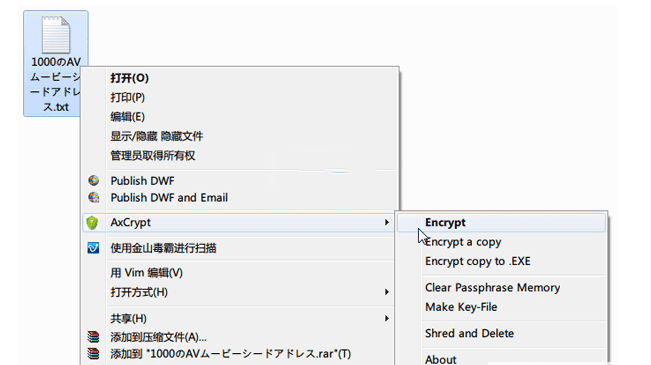 另外,补充一句,有部分伪加密工具的加密效果是仅在本机生效的,复制到别人的机器上就能正常使用了。而使用 AxCrypt 加密后的文件,无论放在网盘、U盘或是别人的电脑上还是使用 Dropbox、金山快盘等同步都依然是加密的,都需要解密后才能使用。