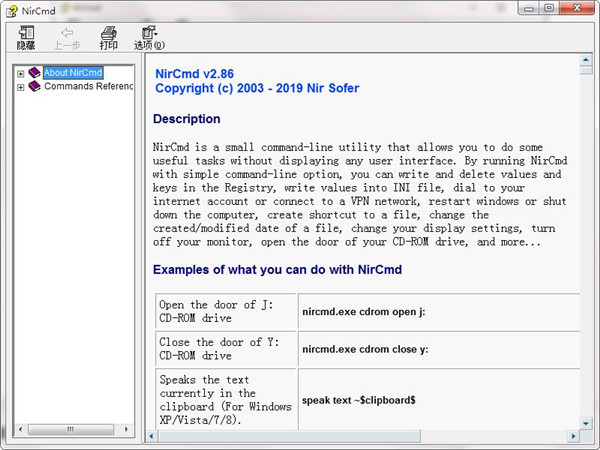 NirCmd绿色版是一套免费的命令行指令,提供许多控制Windows的参数。让你运用命令行的方式,来执行一些常用的动作,例如开启或关闭光驱,增加或减少计算机音量。让你在执行一些常用的动作时,可以更加的有效率。NirCmd绿色版功能非常强大,尤其是对底层的操作,是第三方命令行扩展必备的工具!想摆脱用 ping 延时耗资源又不准确的尴尬局面吗?想试试批处理控制键盘鼠标指哪打哪的快感吗?想把运行中的程序剥开,干点什么坏事吗?哈哈,还没接触过它的快快行动吧,下载下来放到system32里面去吧。