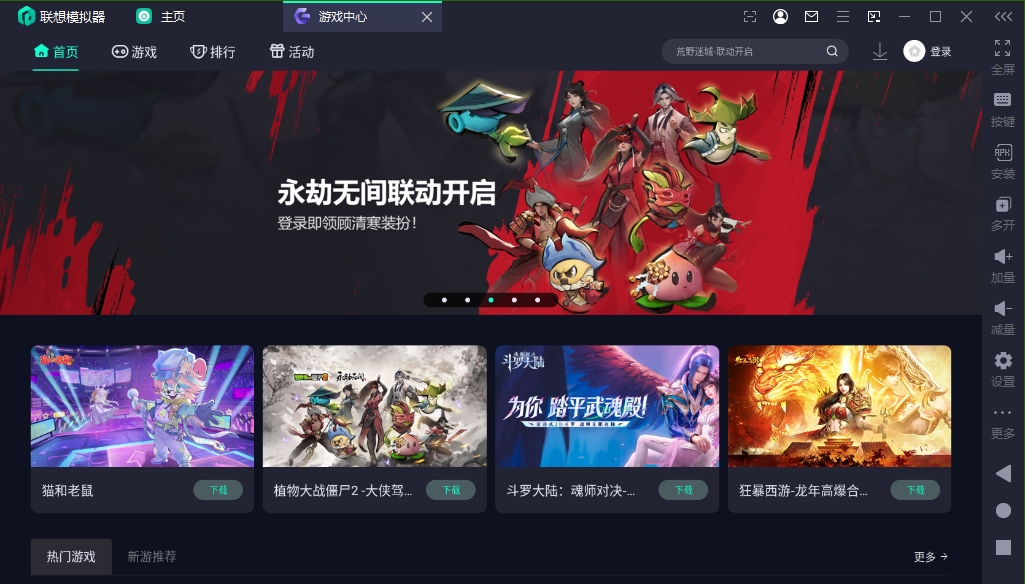 联想模拟器电脑版是由联想官方出品的一款高性能、多用途、超稳定、支持无限多开的安卓模拟器,它不仅兼容主流安卓APP和游戏,且每个版本都会有新适配的APP加入,旨在为用户提供最好的Android APP兼容性!此外,联想模拟器电脑版除了基本的功能之外,它还提供了ROOT、虚拟定位、镜像、共享目录、录屏、IMEI修改等功能,加以无线手柄以及自动键位匹配功能,可为你带来便捷流畅的游戏体验!感兴趣的用户欢迎下载体验。