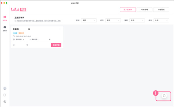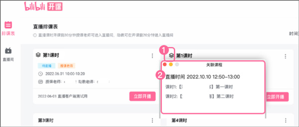 1、如何查看与我相关的直播课时 登录成功后,可点击左侧菜单栏中的【排课表】查看与您相关的所有已审核通过课程下的未直播课时。支持筛选【时间】、【状态】、【课程】、【身份】查找相关维度的直播课时。 【时间】筛选范围:从当前时间往后的直播课 【状态(课时状态)】筛选范围: 待直播=当前有已审核通过可以直播版本的课时 未完善=当前未检测到可直播版本的课时,待完善课时&课程内容信息 【课程】筛选范围: 支持选择查看全部/单个与您相关的课程下含有与您相关的直播课时的课程支持通过【课程标题】或【课程id】进行检索 搜索后无对应结果,则该课程暂无与您相关的直播课时如有疑问,请联系客服~ 【身份(课时身份)】筛选范围: 全部=展示所有您持有【授课老师】或【课时助教】或【发布者】身份的直播课时授课老师=直播课时的讲师(主播),届时将使用授课老师的直播间进行直播授课课时助教=直播课时的助教(房管),届时将支持进入授课老师的直播间进行直播协助 (房间管理等操作,不支持协助开关播或调整直播内容) 发布者=直播课时的创建者(创建点:创作中心·付费课程) *当您同时持有直播课时的多个身份(如:即使授课老师又是发布者),则优先展示授课老师且在筛选课时身份时,2种身份均支持检索后展示对应直播课时。