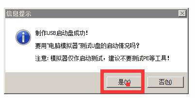 完成写入之后软件会自动弹出一个信息提示,点击“是(Y)”进入电脑模拟器。