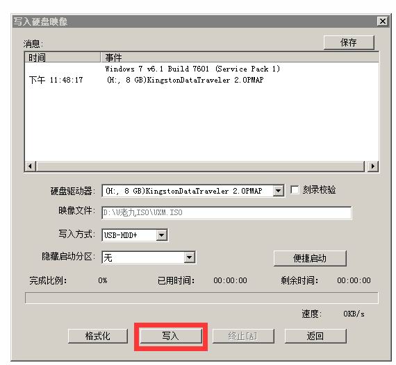 在弹出的写入硬盘映像窗口中,保持窗口内设置参数不变的情况下,直接点击下方“写入”按钮即可,