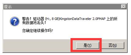 在弹出的提示窗口中,点击“是(Y)”进入下一步操作。