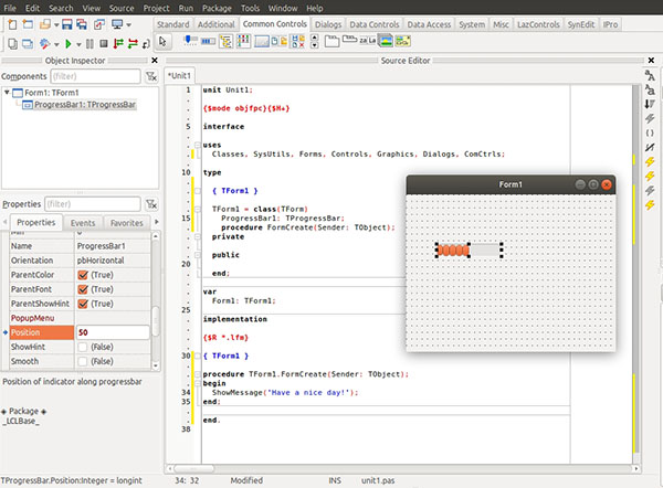 Lazarus有一个图形表格设计师,与相邻组件对齐的指南。几乎每个可以想象的软件都有许多组件,已经准备好使用了。其他组件可以通过Lazarus软件包文件(LPK)添加到IDE中。
