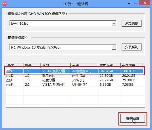 6、选择好原版Win10系统镜像后,选择要安装的盘符(一般是C盘),之后我们点击 “安装系统” 按钮开始安装原版Win10系统,如下图所示: