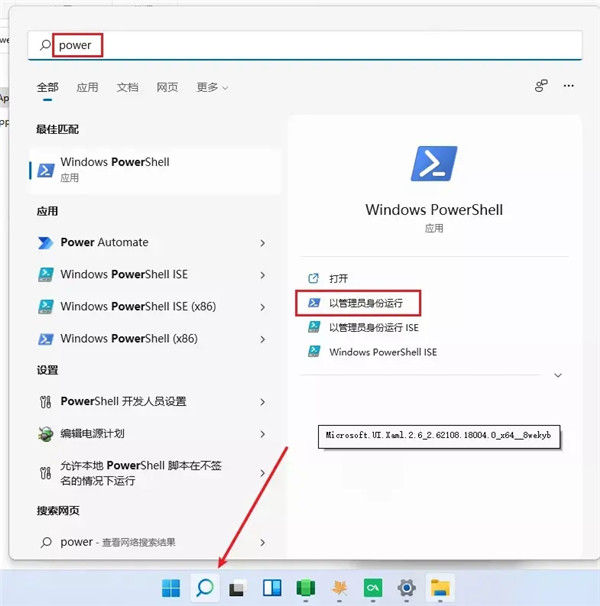 2、之后开始安装1.2G的本体先点击搜索,按照图中的示例,用管理员身份运行
