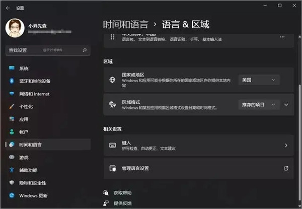 2、设置 - 时间和语言 - 区域 - 设置为美国;
