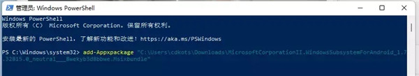 4、回车开始安装,如果你没装那两个Microsoft.VCLibs.和Microsoft.UI.Xaml开头的文件,就可能会提示错误
