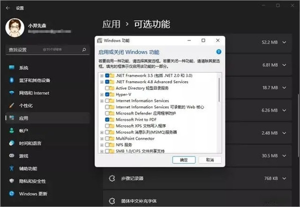 3、应用 - 可选功能 - 更多 Windows 功能 - 开启 hyper-v 和 虚拟机平台;