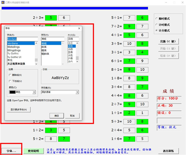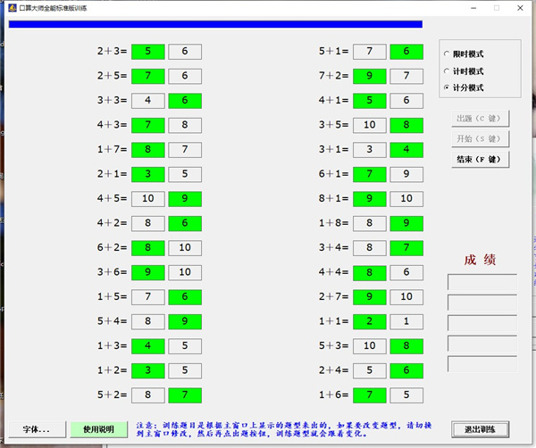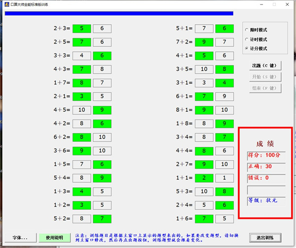 计分模式:完成屏幕上出的题,最后系统按对错算成绩。