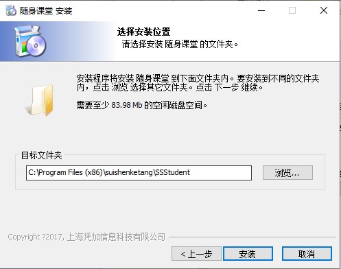 3、选择安装位置,默认【C:\Program Files (x86)\suishenketang\SSStudent】,大家也可以选择别的盘。